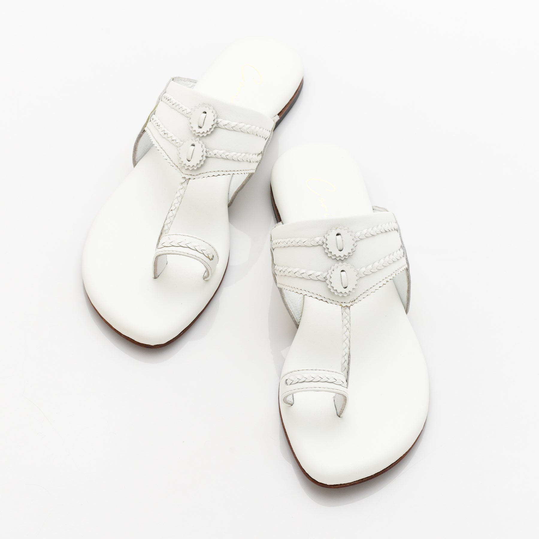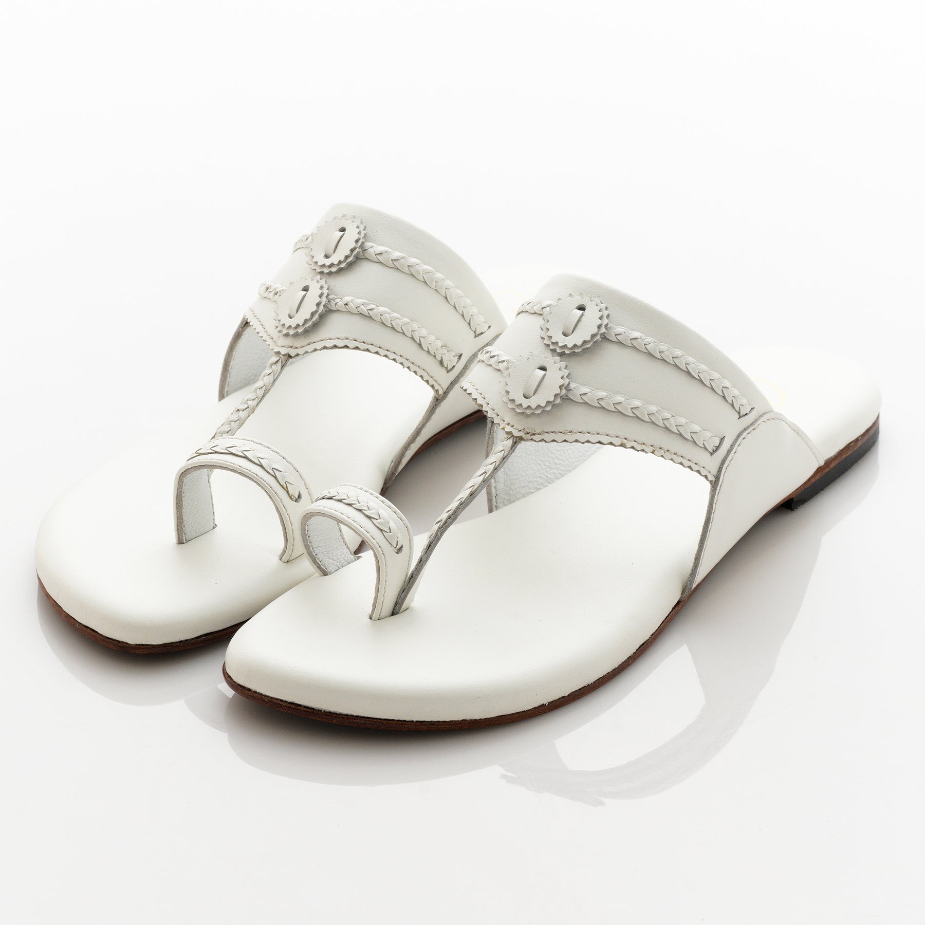 Rooted in tradition, yet effortlessly modern, these Kolhapuris feature a rich leather-look finish, enhanced with delicate braiding and intricate stitching.